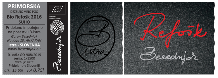 Vino je intenzivno rubinaste barve z nežnimi vijoličastimi odtenki. Aroma je precej intenzivna, že kar razvita in bogata, skoraj bi lahko rekli opojna. Prevladujejo zreli temni gozdni sadeži (črni ribez in borovnice), višnja in temna čokolada, v ozadju najdemo še nežno noto lesa in vijolic. V ustih je vino suho, sočno, kar polnega telesa in z izraženo kislino, ki daje vinu značilno sortno svežino. Vino deluje usklajeno, nedvomno vemo da poizkušamo refošk. V ustih prevladujejo sadne zaznave (borovnice, višnje in črni ribez), ostale zaznave je čutiti v ozadju. Tanini so žametni, zreli in dajejo vino hrbtenico. Odhod je daljši in temeljito očisti ustno votlino.