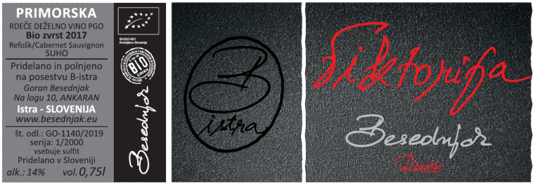 Vino je intenzivno temno rubinaste barve z mladostnimi odtenki. Aroma je srednje izražena, kompleksna in zelo prijetna. V ospredju so temni gozdni sadeži (borovnice in robidnice), višnja in celo sliva, v ozadju najdemo še note lesa (celo dima), temne čokolade in pikantno noto (črni poper). V ustih je vino suho, gosto, srednje polnega telesa in s prijetno izraženo kislino, ki daje vinu svežino. Vino deluje uglajeno in elegantno. Okušamo enake arome, kot jih čutimo na nosu. Prednjačijo temni gozdni sadeži, višnja in sliva, v ozadju jih spremljajo še nežna nota lesu, pikantna nota (črni poper) in temna čokolada. Taninov je precej in so skoraj svilnati ter še vedno dokaj čvrsti. Odhod je daljši, prijeten in lepo očisti usta.
